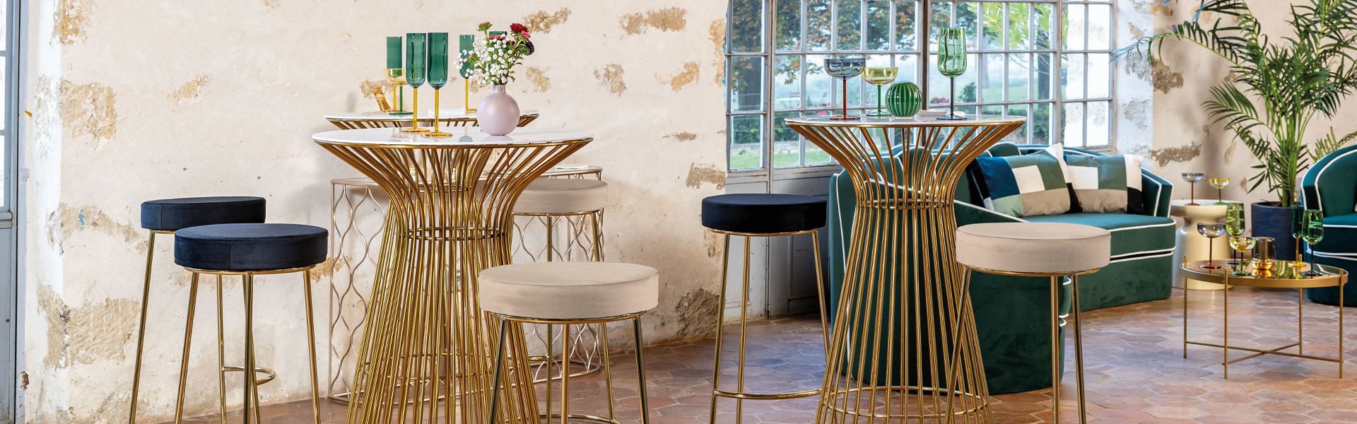 En intérieur, les fauteuils en velours et canapés en velours apportent une assise confortable et une ambiance cosy, adaptée aux espaces d’accueil, lors de mariages ou salons professionnels et aux espaces lounge quel que soit l'événement.