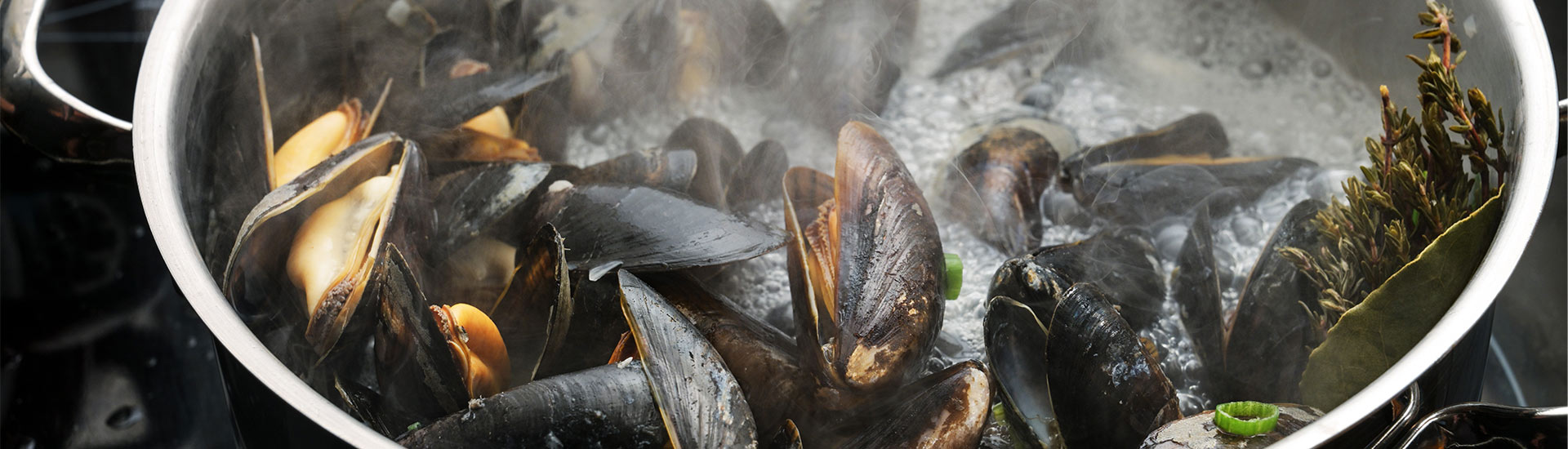 Des moules marinières savoureuses : conviviales et appréciées de tous, elles se cuisinent en grande quantité avec une cuisson parfaitement homogène.